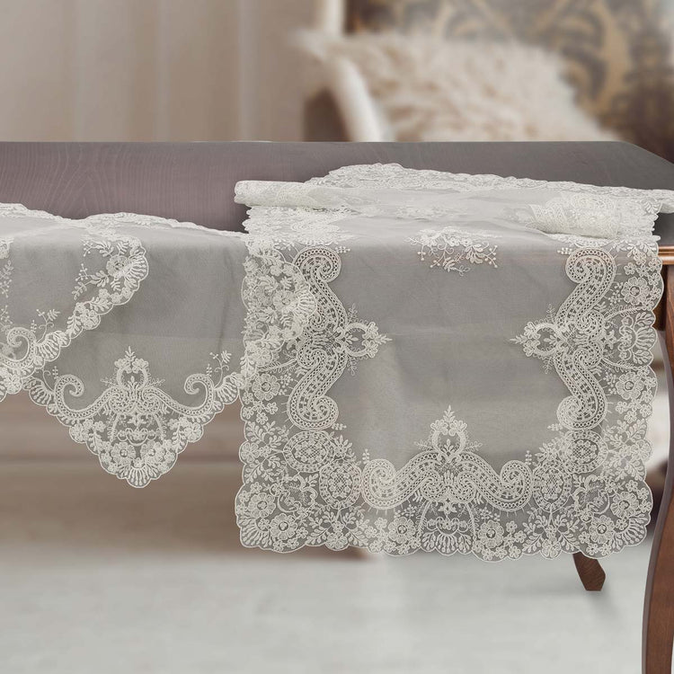 Set centrini camera da letto colore avorio in pizzo ricamato su tulle - EloisePrezzo di listino €180,00 EURPrezzo di listinoPrezzo unitario per-